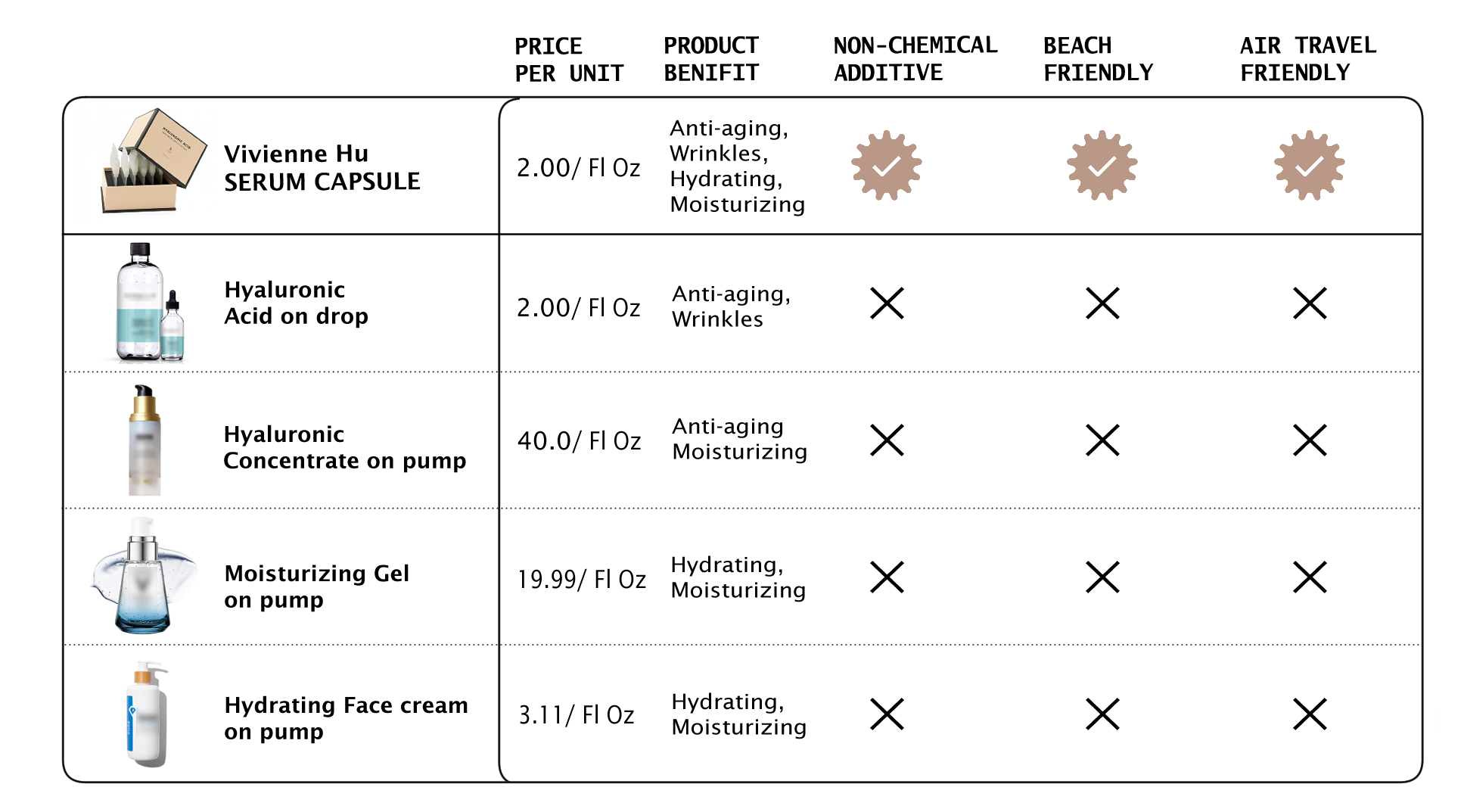 Why the packaging? The airtight protect the serum from external elements that can degrade its formula. The precise amount of serum in each eliminates the need for measuring, ensuring a perfect dose every time. The portability of the packaging allows for easy and convenient use anywhere, providing hydration and nourishment whenever needed. Overall, the unique packaging demonstrates the commitment to delivering an exceptional skincare solution that remains true to its purest form.